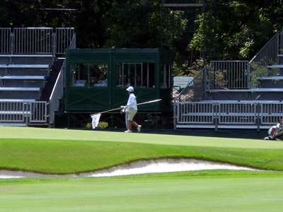 次はAプロのアプローチになりますが、ピンを持っているBプロのキャディは、そのピンをどうするでしょうか?