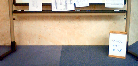 違う点を挙げるとすると、そのホワイトボードの下に一つの箱が置かれているということ。